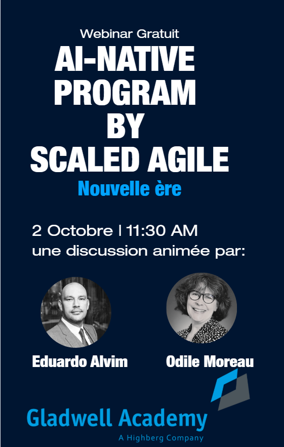 Le 2 octobre à 11h30, Gladwell Academy a le plaisir d’accueillir une discussion animée par Eduardo Alvim (SAFe Fellow & SPCT) et Odile Moreau (Strategic Advisor & SPCT, Scaled Agile Inc.).